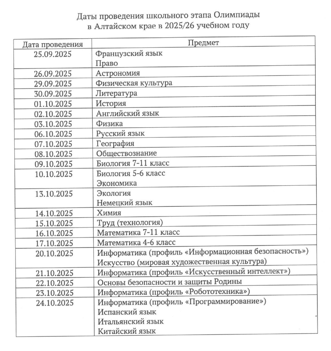 Школьный этап всероссийской олимпиады школьников в 2025/26 учебном году организован с 25 сентября по 24 октября 2025 года. Олимпиада будет проходить по 24 общеобразовательным предметам.
